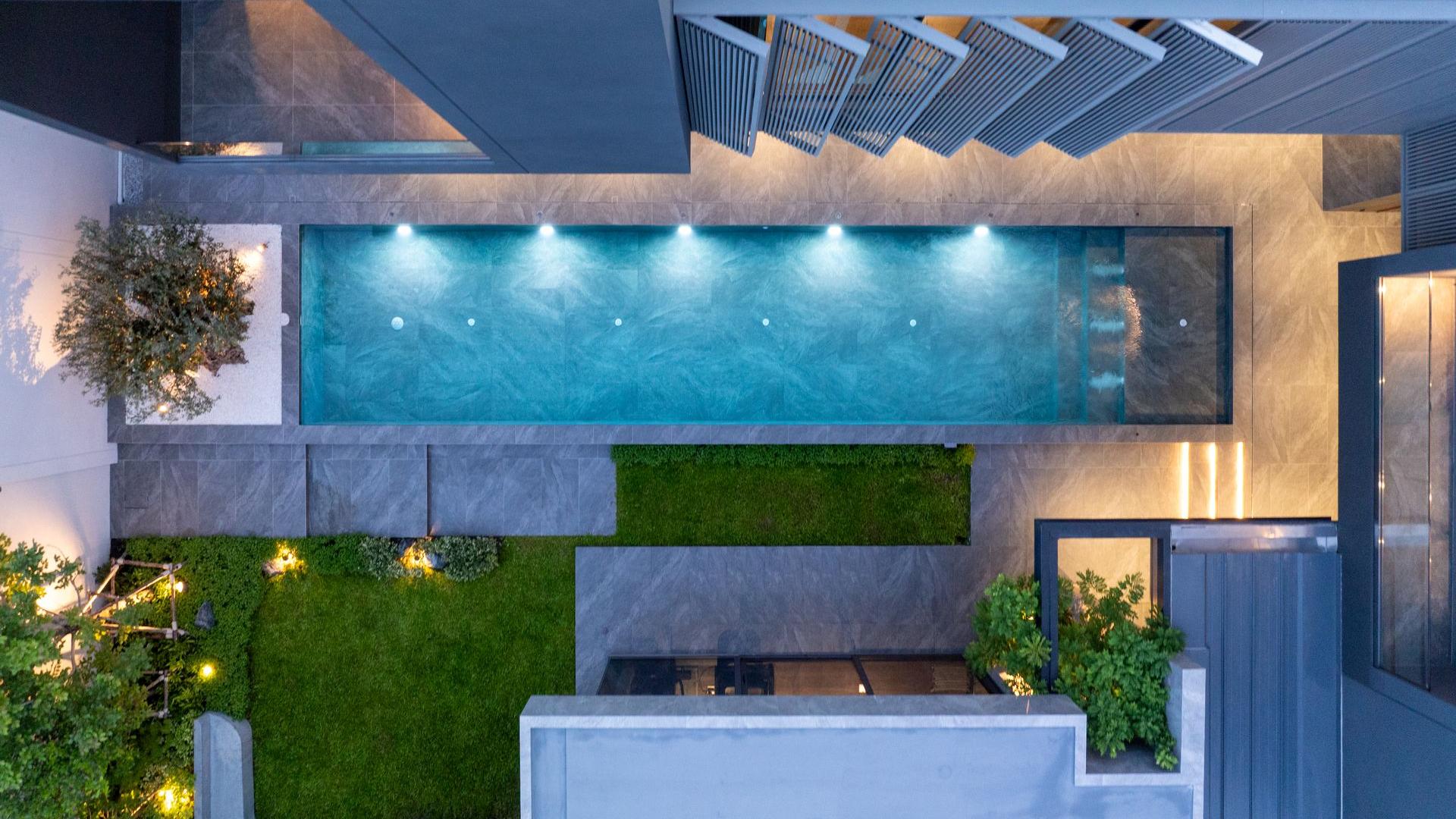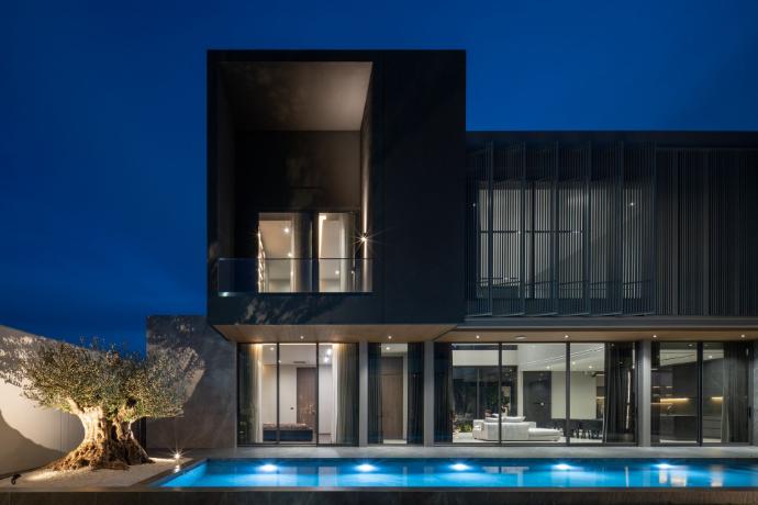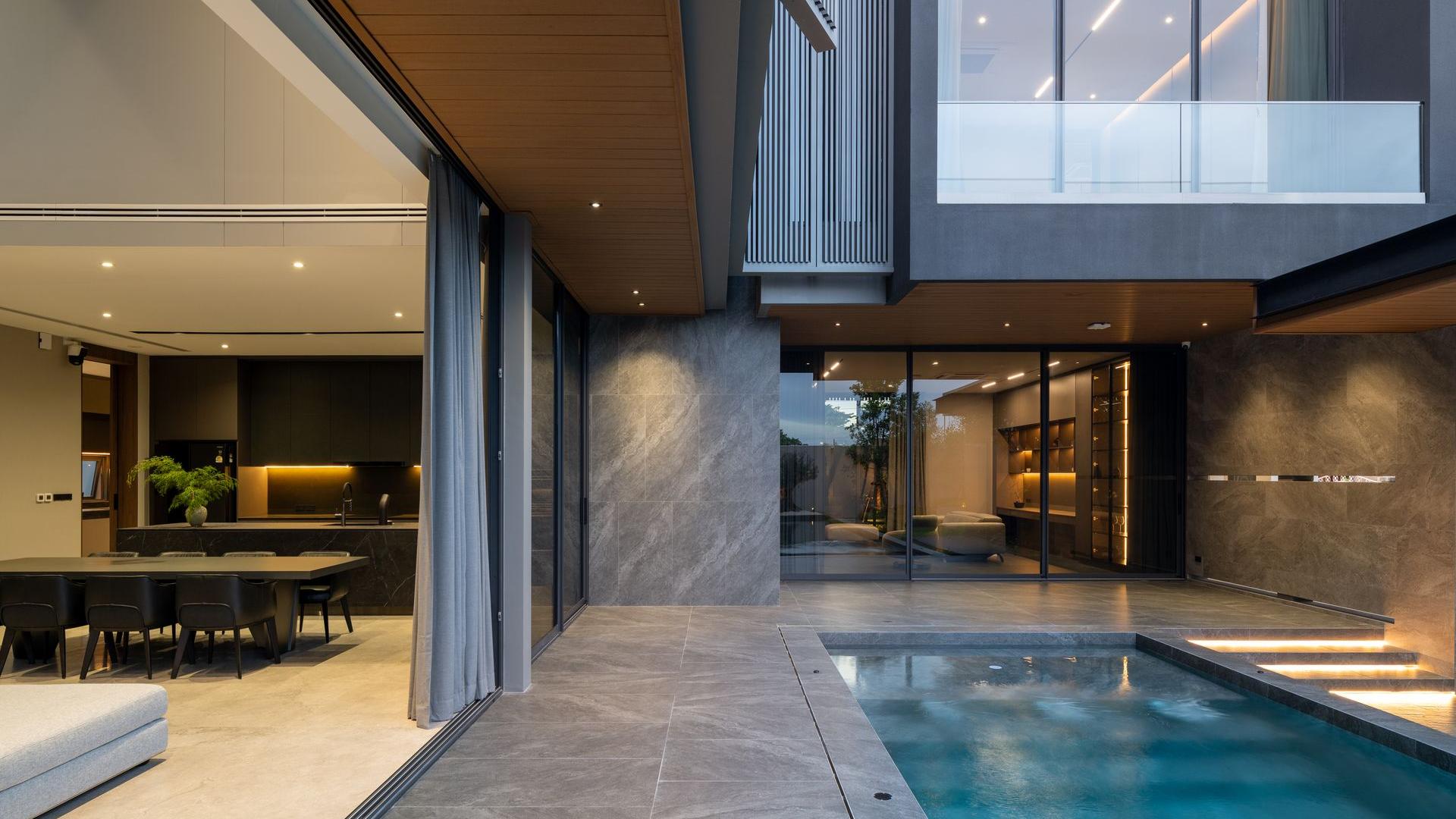 รูปทรงของอาคารถูกวางในลักษณะผสมผสานระหว่างตัว L และตัว U เพื่อสร้างพื้นที่ที่โอบล้อมและปิดตัวเองอย่างพอดี เสมือนเป็นเกราะกำบังจากภายนอก แต่ในขณะเดียวกันยังเชื่อมโยงภายในอย่างใกล้ชิด ฟังก์ชันการอยู่อาศัยถูกออกแบบให้สัมพันธ์กัน สะดวกต่อการใช้ชีวิตของสมาชิก