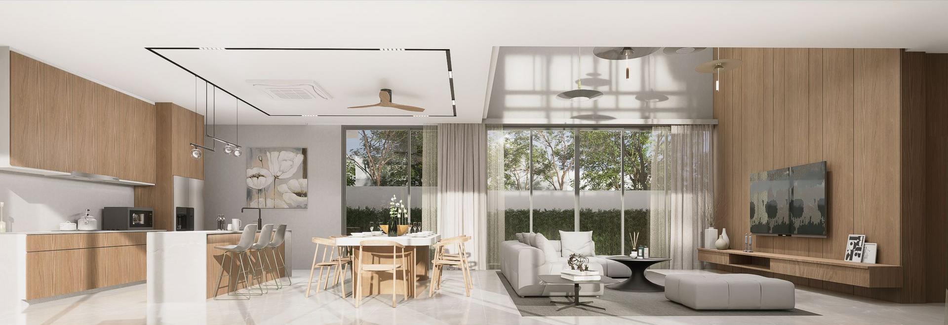 Modern Tropical x ฮวงจุ้ย ในบ้านที่ออกแบบให้ "หายใจไปพร้อมธรรมชาติ"เราเชื่อว่า บ้านที่ดี ควรเป็นมากกว่าที่อยู่อาศัย — ต้องเป็นพื้นที่แห่งความสมดุล ทั้งด้านพลังงาน สิ่งแวดล้อม และจิตใจ จุดเด่นของโครงการ เชื่อมต่อพื้นที่ภายในและภายนอก อย่างกลมกลืน ด้วยผังบ้านที่เปิดรับลมธรรมชาติและแสงแดดในทิศที่เหมาะสม ศาสตร์ฮวงจุ้ย ถูกนำมาประยุกต์ใช้ตั้งแต่การจัดวางตำแหน่งห้องในแต่ละส่วน เพื่อสร้างสมดุลแห่งพลังงานที่ดี ใช้วัสดุและโทนสีที่กลมกลืนกับภูมิทัศน์ ไม่ตัดขาดจากสภาพแวดล้อม แต่กลับเสริมให้ธรรมชาติเด่นชัดยิ่งขึ้น